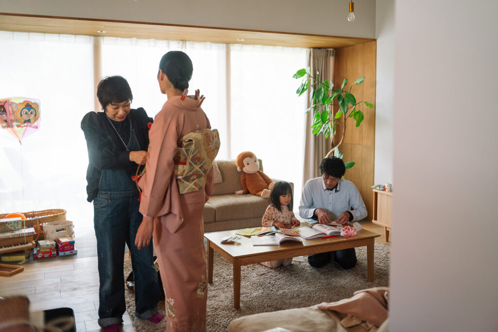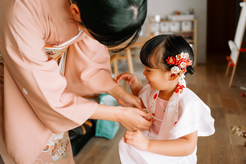 スタジオでの前撮りとはまた違う、当日の朝から神社まで、家族の時間をまるごと残す七五三撮影。