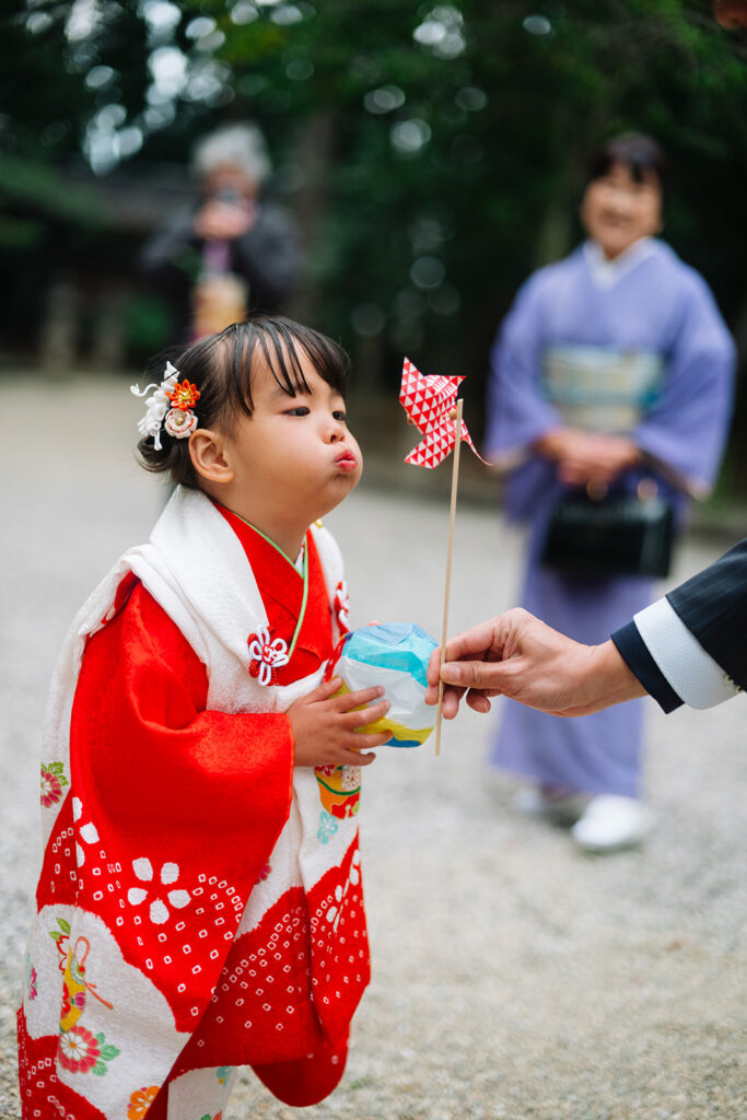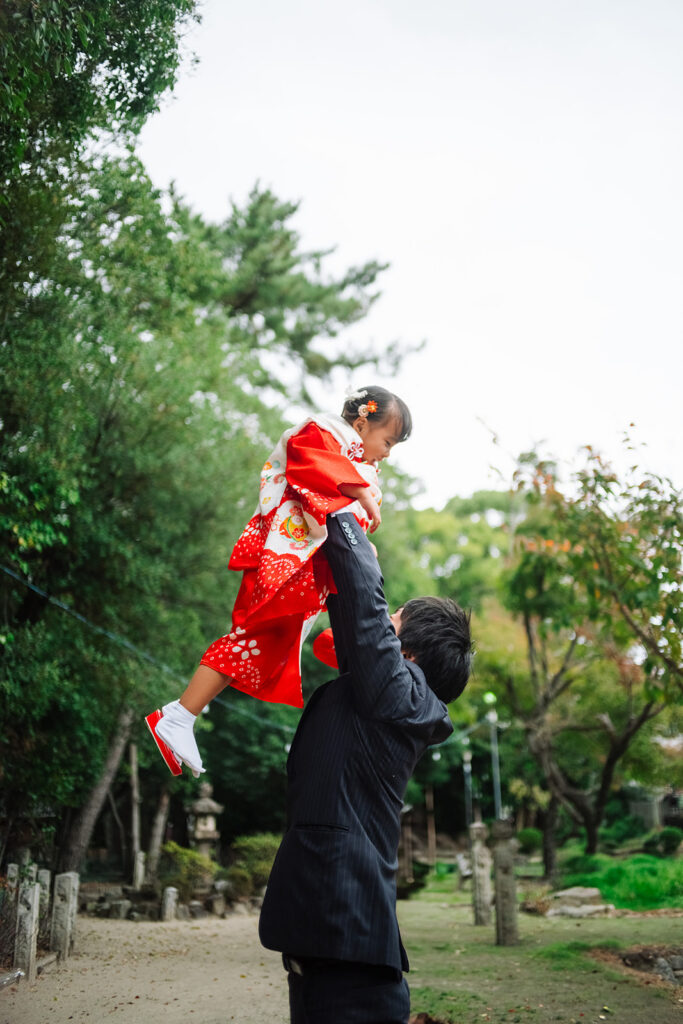 3歳という時期は短い。アンパンマンが大好きで、地面の石を拾って、パパに高い高いをしてもらえる今。その「今」をどう過ごしているかを呼び起こせる写真を残すこと——それが、百穀レンズの七五三撮影です。